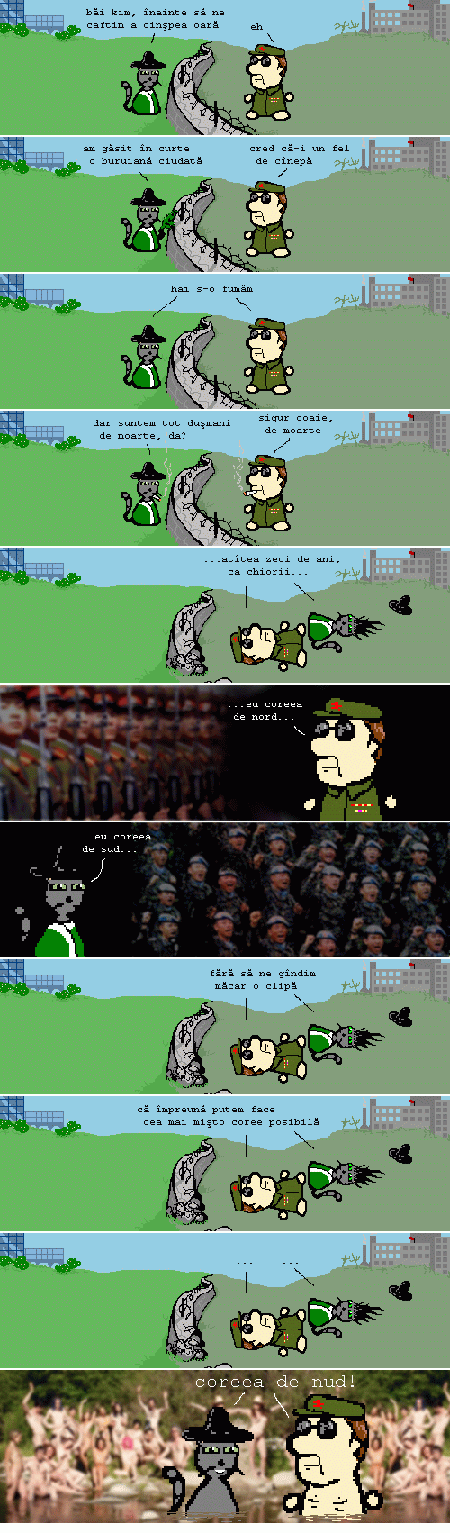 Târziu râd, că am chiulit şi ştii cum e când ai oreion şi tre să recuperezi…dar Coreea de Nud?! Vasile eşti un templier răspopit al jocurilor de cuvinte :)))) 축하 해요
