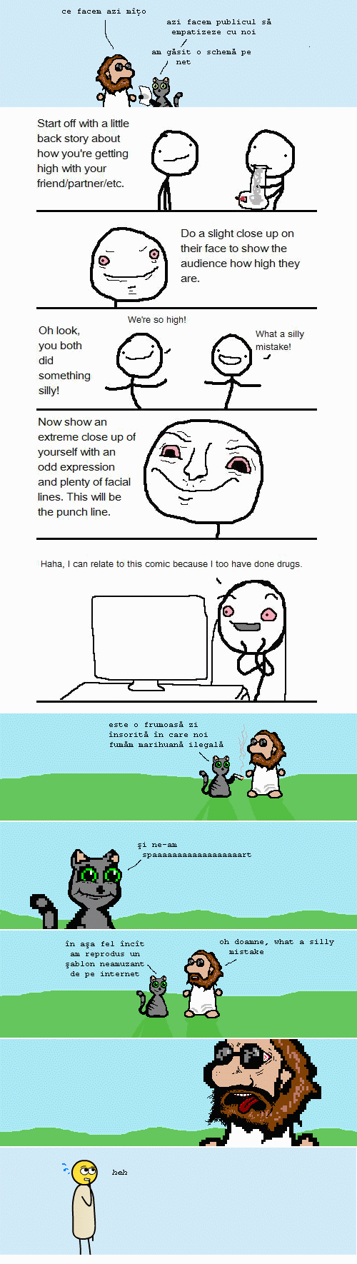 Bravo, rats. Facem comicuri din 2006 si cea mai reprezentativa expresie a noastra e “heh”. fml