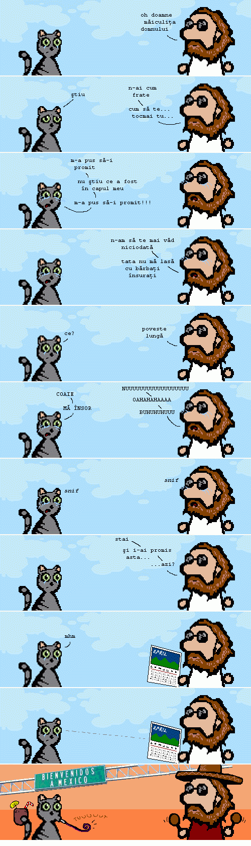 @Alex păi uite, anul trecut de 1 aprilie l-am descoperit pe dumnezeu şi am hotărît să… ah, stai, gata, nici asta nu mai merge.