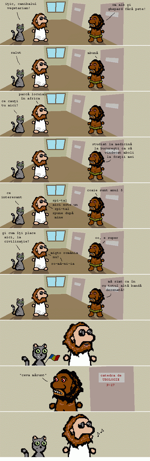 (Nu e prima oară când Mîţa şi Iisus îl întâlnesc pe Iţic, canibalul vegetarian. A mai apărut în episoade mai vechi. De asemenea, Iţic nu e evreu, chiar dacă îl cheamă Iţic. E negru. Şi dacă tot am povestit ieri atâta despre puţe…)
