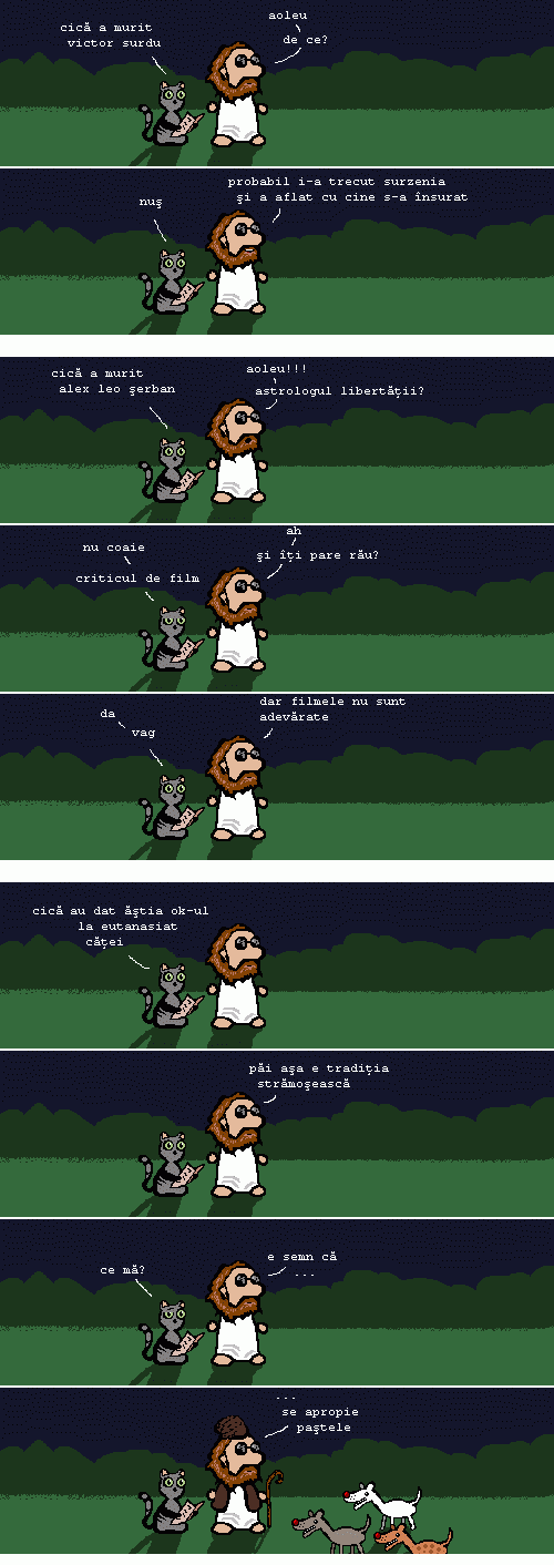 Dragii mei, care va să zică vă rog fain să mă scuzaţi că n-am fost pe-aici să vă încânt dar, printre altele, am dat iama în locantele chinezeşti din cartier, am dormit ca un porc, l-am comemorat pe Dan Mizrahy şi chiar mai mult decât atât, mi-am omorât şi reînviat calculatorul cu Win XP, singurul pe care pot face Mîţe pentru voi.