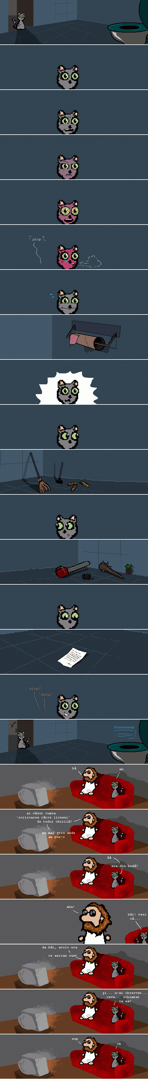 E luni, e Mîţa cu î din i! De data asta, pentru că voioşia episodului 200 s-a risipit, avem de-a face doar cu un mic exerciţiu de expresii faciale şi fecale ale felinei foastre freferate.