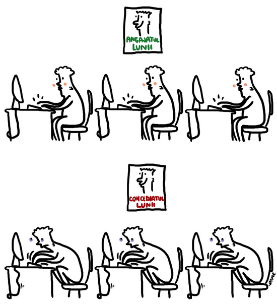Mă întreb cât de motivant ar fi un afiș „gangbang-ul lunii”, sau „angajata făcută poștă a lunii”. Cât de motivant și pentru cine.