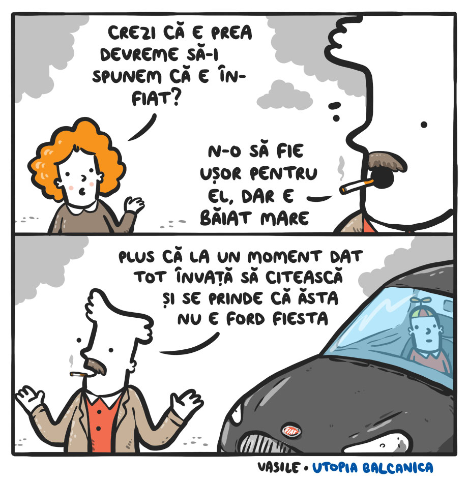 În cea mai mare parte, acest sait e opera unui singur om. Pentru a putea rămâne în continuare semi-amuzantă (că gratuită e tot timpul), Utopia Balcanica are nevoie de ajutorul tău.Dă nişte cafele pe patreon | Dă o cafea pe ko-fi | Cumpără un tricou