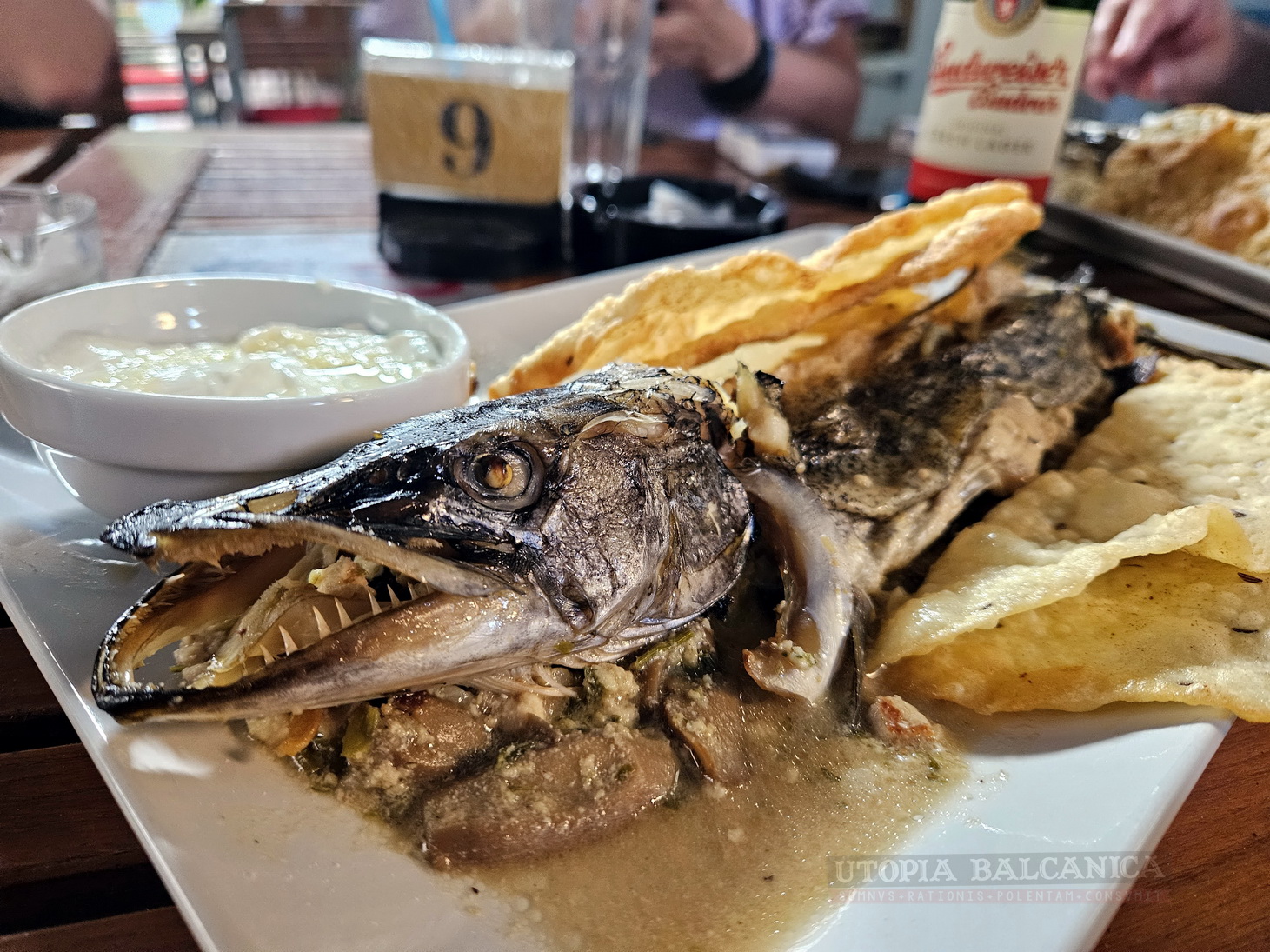 Cum aş putea s-o ratez, mai ales când a umplut-o altul? Ştiuca umplută e o adevărată sagă. (Bunică-mea făcea ghefilte fiş şi nu părea uşor.) Trebe’ belită cu delicateţe, ca Hercule pă leul din Nemeea, în timp ce jivina rânjeşte la tine cu 3 milioane de dinţi. Trebe’ pigulită carnea de pe 10 miliarde de oase. Trebe’ recombobulată o formă aproximativă de ştiucă şi îmbrăcată la loc în pielea iniţială. Zi mersi că e tocată şi nu muşcă.