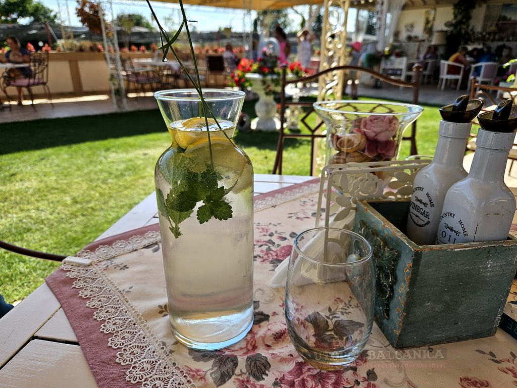 Kilul de sirop de soc cu apă rece, nu atât de dulce cât să fie scârbos (mi-era teamă!), a venit într-o carafă mare, cu lămâie, frunze de melisă şi două fire de levănţică très jolie care bâţâiau în vânt ca antenele unui cosaş. Socului i se zice băz în bulgăreşte. Avem şi noi boz, e rudă cu socul dar nu e bun de băut.