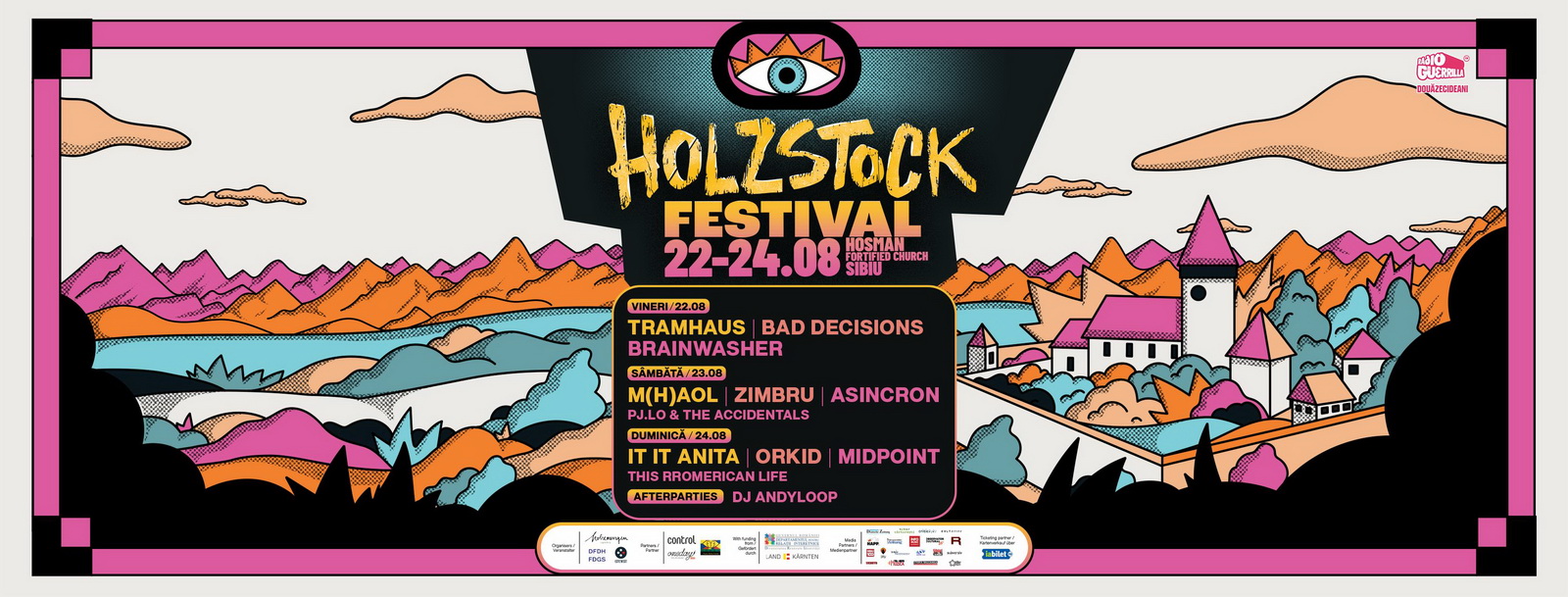 Plus Zimbru şi Orkid şi Bad Decisions şi alte abţibilduri lipite haotic pe scena indie autohtonă pă care atât de tare o iubim la Bucureşti şi la Cluj. (Dar fără DENIS pentru că DENIS au cântat deja la Holzstock acum doi ani).