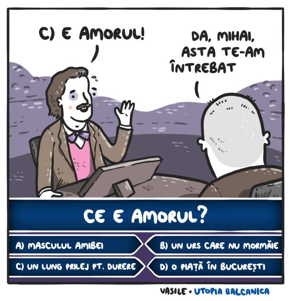 În cea mai mare parte, acest sait e opera unui singur om. Pentru a putea rămâne în continuare semi-amuzantă (că gratuită e tot timpul), Utopia Balcanica are nevoie de ajutorul tău.Dă nişte cafele pe patreon | Dă o cafea pe ko-fi | Cumpără un tricou
