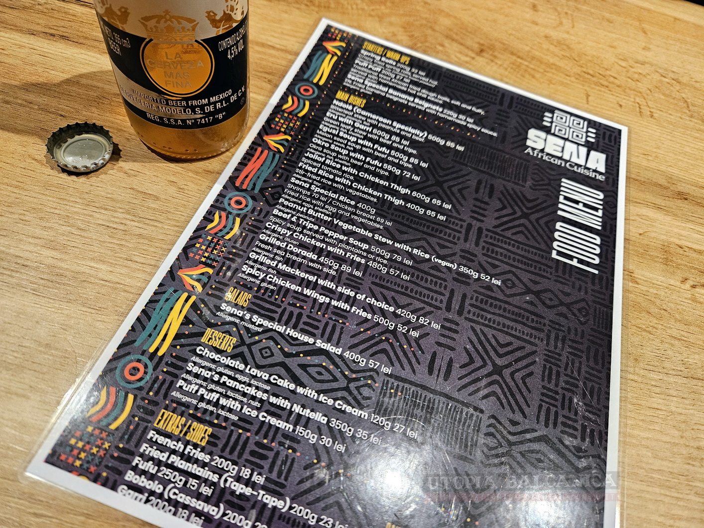 Meniul e provizoriu. Aflu că vom căpăta curând unul cu poze şi explicaţii, pentru turiştii neiniţiaţi în bucătăria cameruneză. Cool.