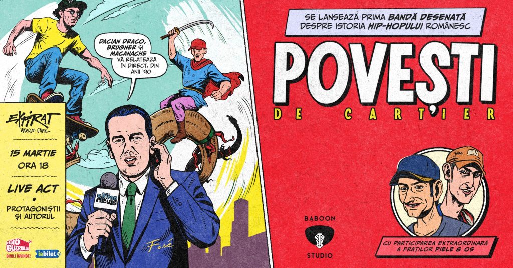 Duminică, 15 martie, primul episod din istoria hip-hopului românesc în bandă desenată – Poveşti de cartier – se lansează oficial la Expirat. Cu Brugner, Dacian, Piele şi invitaţi surpriză.